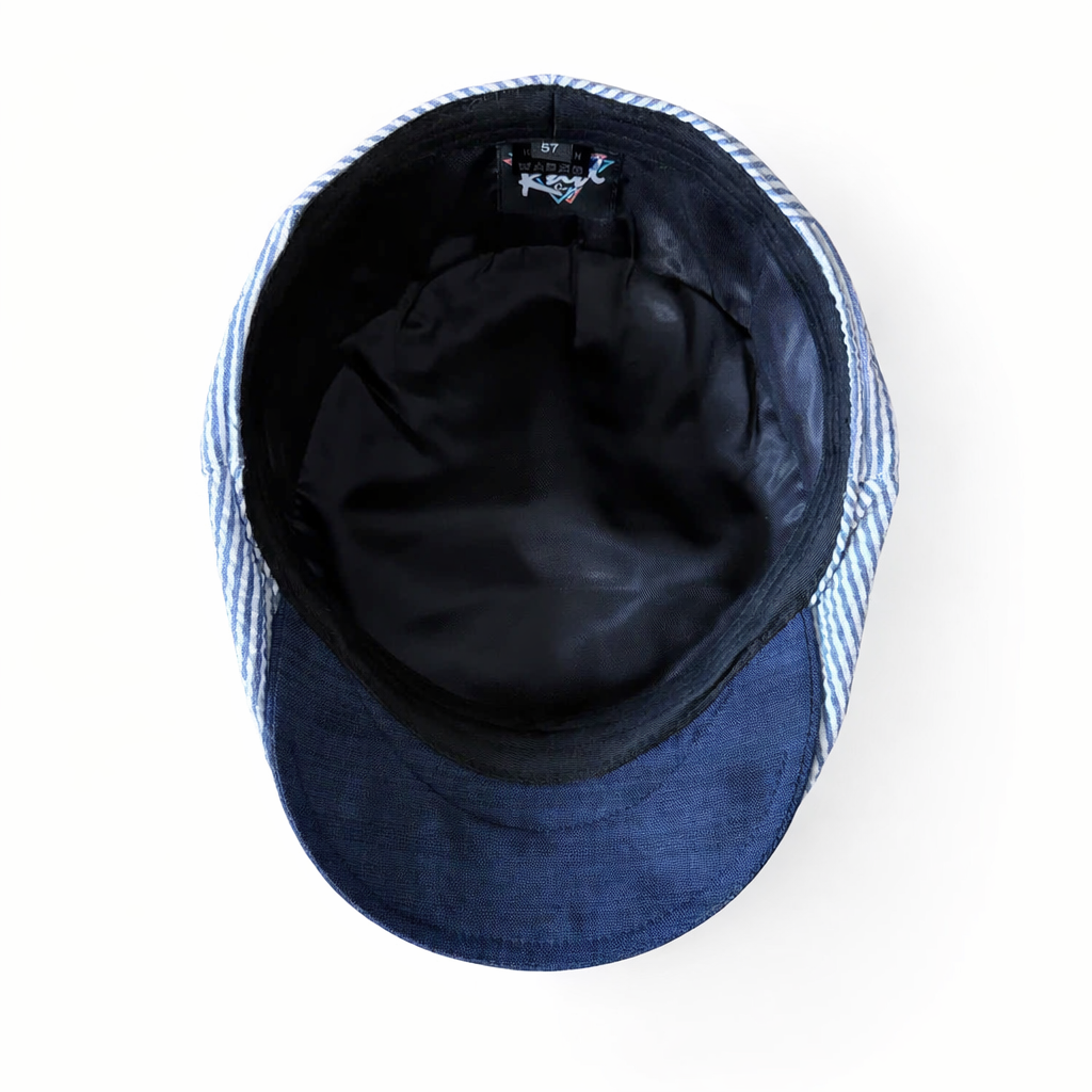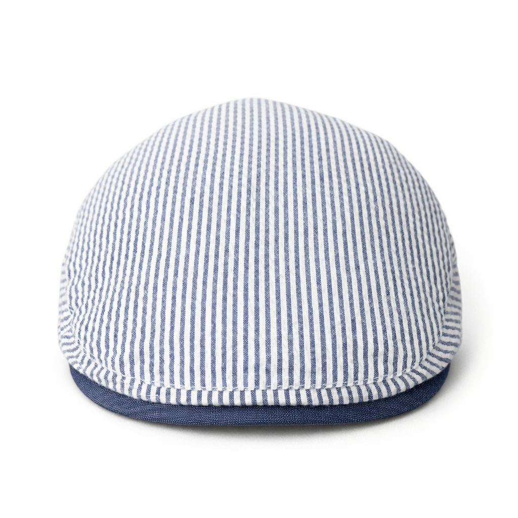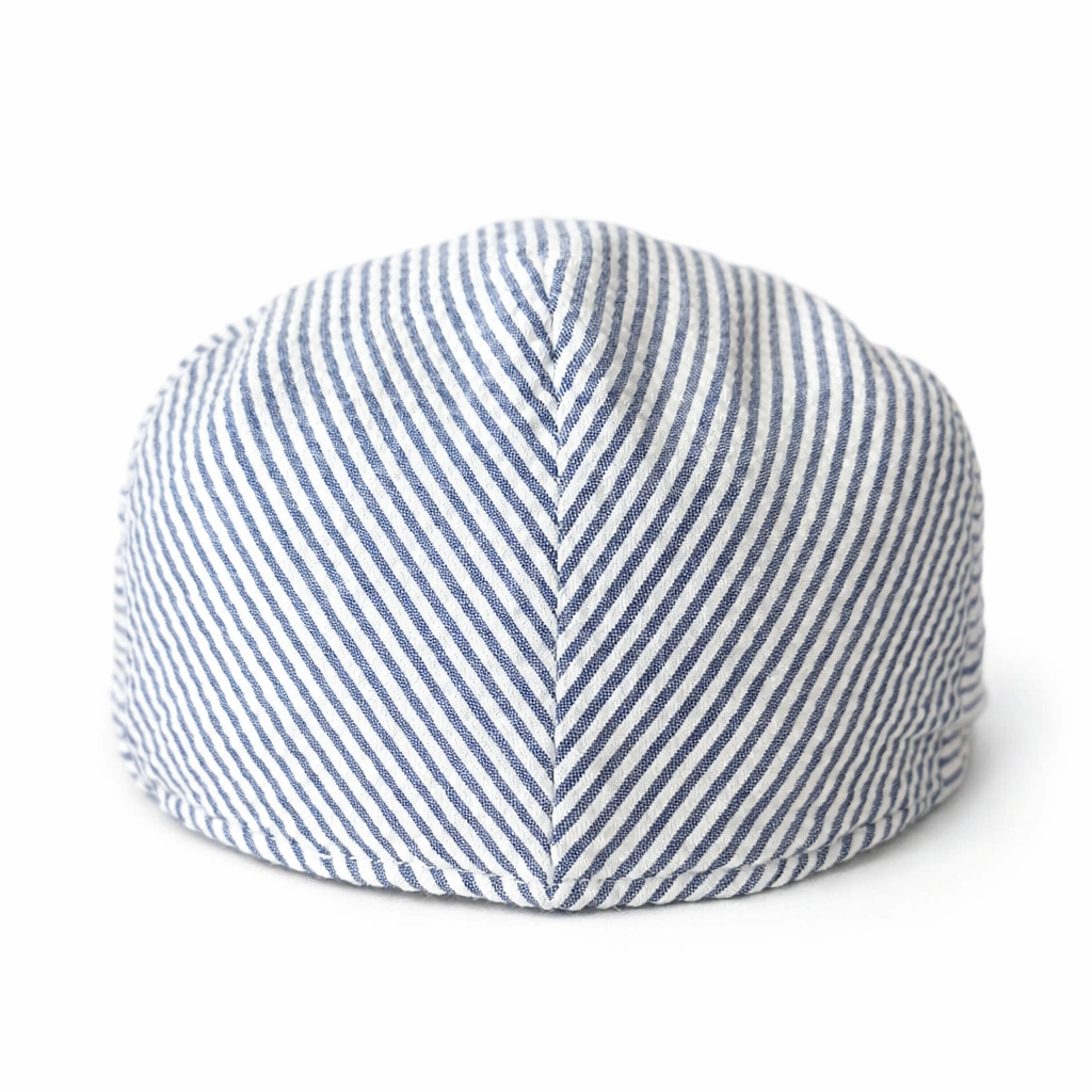 Yacht Rock is Rad Caps’ tribute to effortless coastal cool — a lightweight, blue‑and‑white striped seersucker ivy cap built for spring days, summer nights, and every sun‑drenched moment in between.